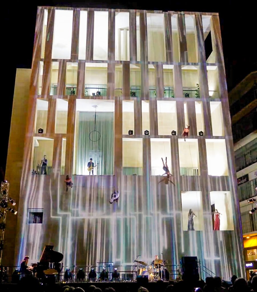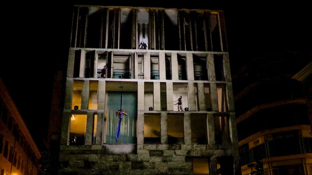 - Formato escénico: espectáculo site-specific sobre fachada arquitectónica